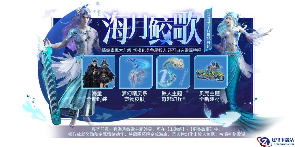 在更新后的11月26日,山海世界即将上线【海月鲛歌】主题挖宝活动!