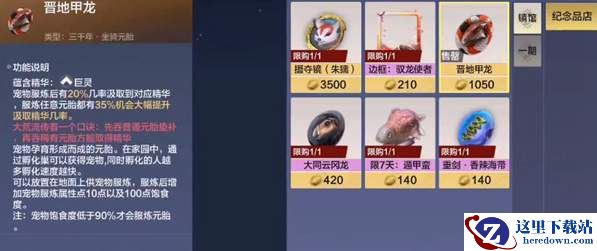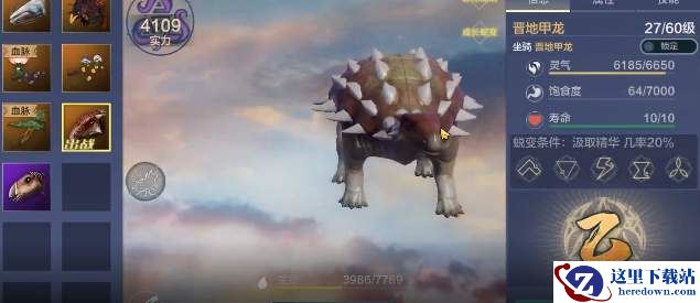 1、晋地甲龙养获得方法,玩家参与“龙战于野”版本活动获取积分,在NPC讲解员西西出开启活动商店,花费1050积分可以兑换晋地甲龙元胎;此外参与恐龙大作战玩法也有一定几率能够获得元胎。之后前往家园孵化即可获得晋地甲龙;