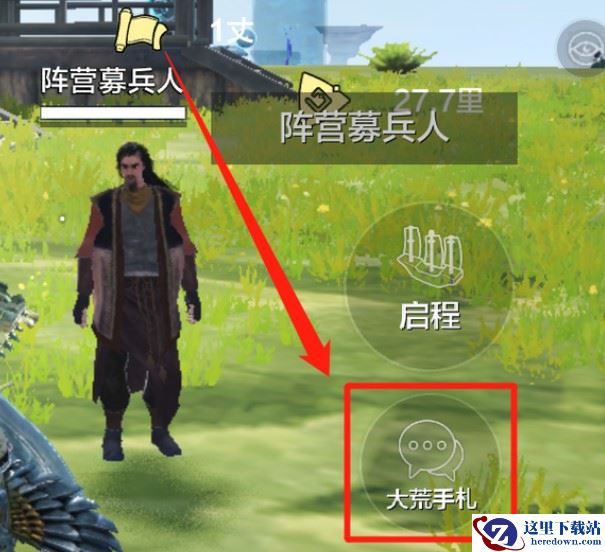 传送抵达后,与NPC<阵营募兵人>交互,点击大荒手札按钮,即可触发剧情对话