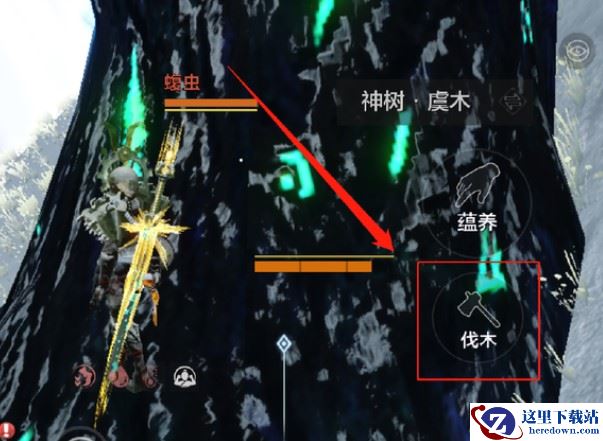 接取任务后,要求玩家砍伐一棵神树,需要通过点击主界面左下方【功能按钮 - 搜索 - 定向 - 事件 -神树】,即可搜索到附近范围的神树,如果附近搜索不到神树,可以尝试前往附近其他区域后再次进行搜索。大世界上神树数量较多,大家无需担心。靠近神树后,将华霆斧装备到快捷武器栏,点击伐木,即可砍伐神树,注意神树比较坚固,需要多砍伐几次。成功砍伐后,神树消失,任务完成。