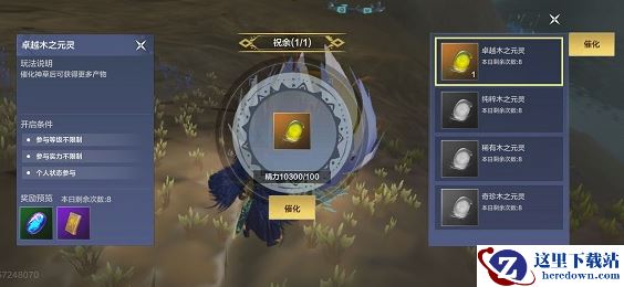 4、注意:祝余每天只有10次机会在催化之后会得到原气晶石,而木之元灵的品质越高得到的奖励才会越多。