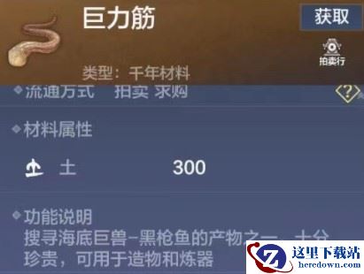 2、想要获得巨力筋,就要去搜寻海底巨兽,它是海底巨兽黑枪鱼的产物之一,非常的珍贵,也可以用来造物和炼器。