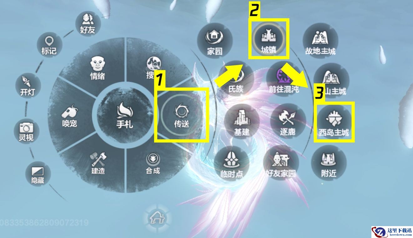 1、玩家需要打开左下方的菜单,在这里选择传送到城镇西岛主城的位置。
