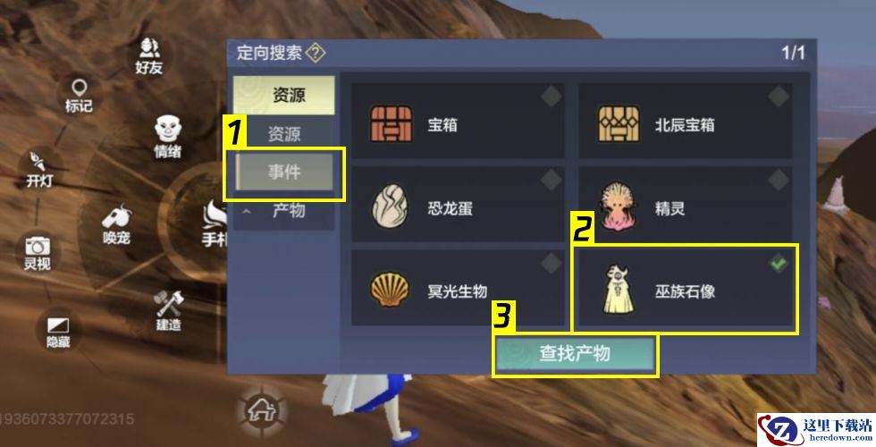 2、这样我们就可以前往西岛区域,点击定向搜索中的事件,选择巫族石像。