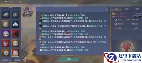 扑霜本体+三万年玉兔进化丹=甲级珍兽三万年·玉兔。