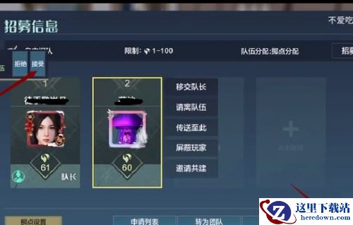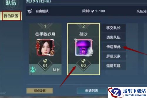 2、进入队伍页面,点击想传送的队友,会在队友右侧出现选项框,选择【传送至此】即可。