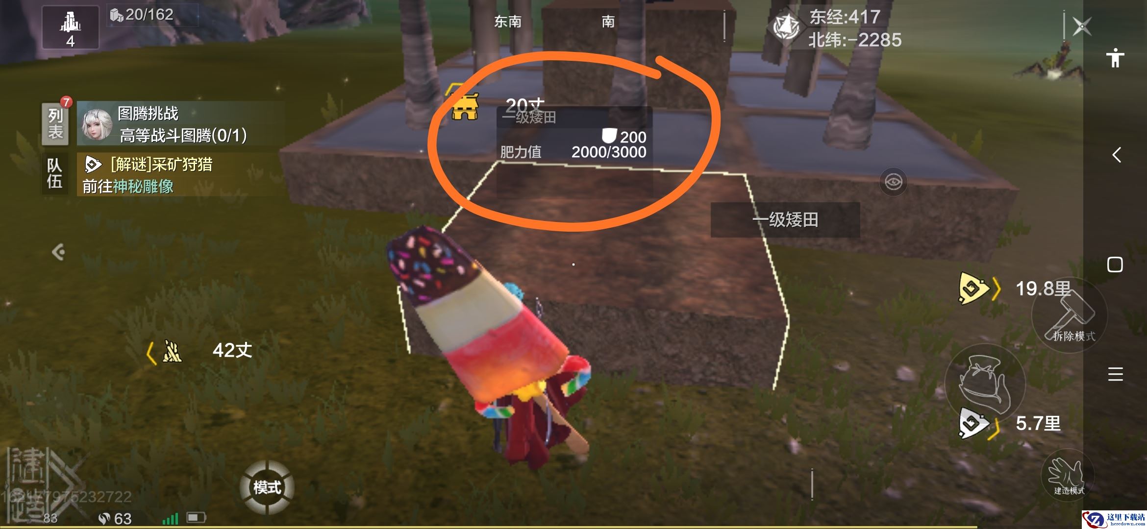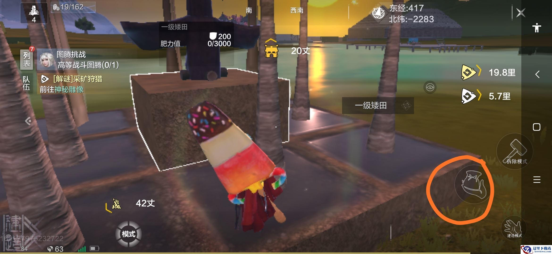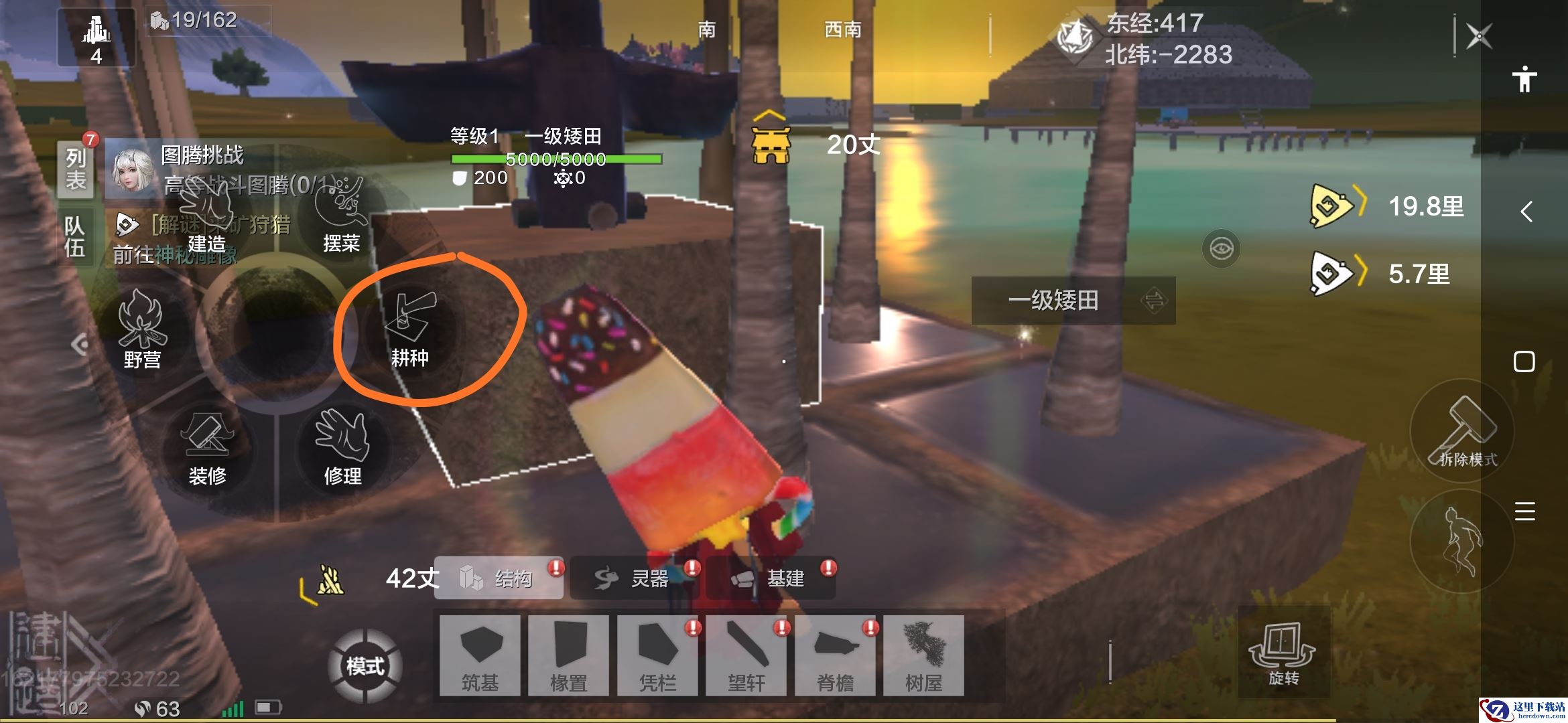 1、其次按照下图画圈的步骤一步一步进行,点击小房子-建造,耕种;