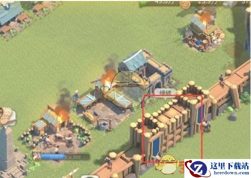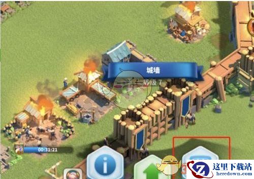 2、随后,在城墙界面的右下角,轻按保卫功能键;