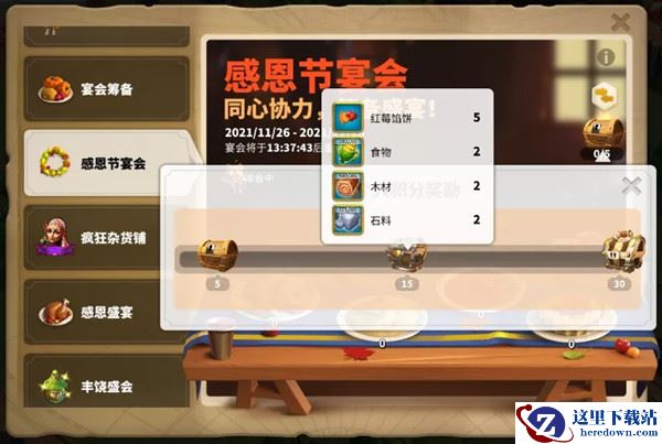 除了大餐还有大餐!在【感恩盛宴】活动面板里通过交付小叉子获得红梅馅饼,或者消耗宝石获得火鸡腿就会获得相应的宝箱积分。