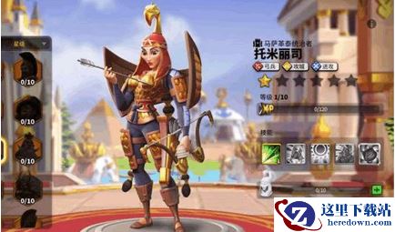 1、塔玛尔女王是新的采集统帅,1技能可以提升自身15%防御力同时为团队提供回血效果,觉醒后可以针对附近血量最低的队友进行治疗;