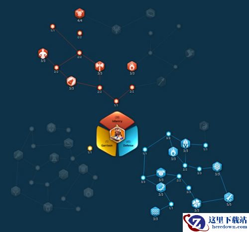 驻防更多时候并不是用于保护自己的城市,由于城市可以开保护盾获得无敌的效果,在游戏里,驻防更多的是用于守联盟的旗帜和要塞等。因此我们并不需要提高警戒塔的能力,也就不需要选择增加警戒塔属性的天赋。由于驻防时,我们很难控制联盟的成员是否会使用纯兵种驻防,所以步兵天赋反而作用不大,而防御天赋会更加有效的提升查理马特驻防的能力。