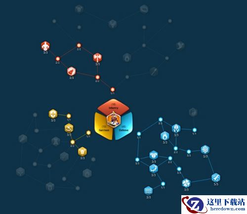 野战天赋如图所示,查理马特的防御天赋可以大大的提高查理在野外的生存能力。由于应用于野战,查理马特可以自己调整所带的兵种。而查理马特是一个很强力的步兵武将,所以我们推荐当野战时可以选择纯步兵。当我们的部队是纯步兵的时候,就需要通过选择步兵的天赋加强我们查理马特的能力。