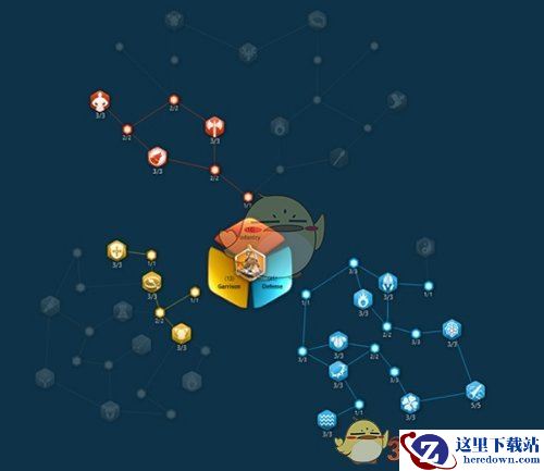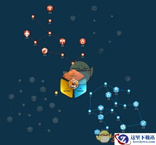 驻防更多时候并不是用于保护自己的城市,由于城市可以开保护盾获得无敌的效果,在游戏里,驻防更多的是用于守联盟的旗帜和要塞等。因此我们并不需要提高警戒塔的能力,也就不需要选择增加警戒塔属性的天赋。由于驻防时,我们很难控制联盟的成员是否会使用纯兵种驻防,所以步兵天赋反而作用不大,而防御天赋会更加有效的提升查理马特驻防的能力。