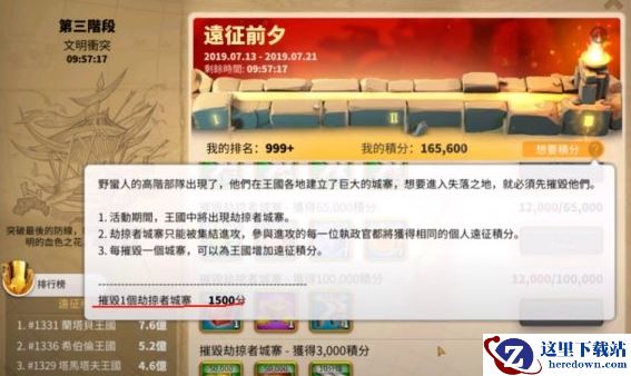 刷劫掠者城寨。劫掠者城寨只能集结,参与攻击的每一个位执政官都可以获得相同的远征分数。每摧毁一个城寨,可以为王国增加远征积分。