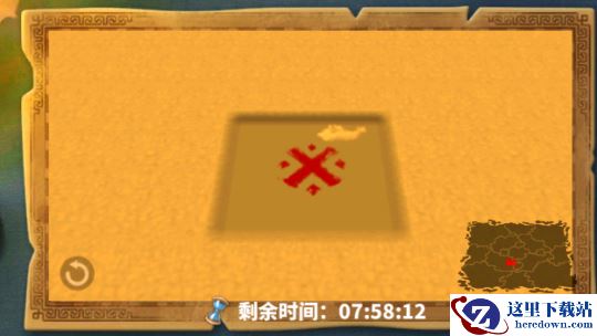 当集齐七种碎片以后点击开始寻宝按钮之后会有一个宝藏大概位置的小地图