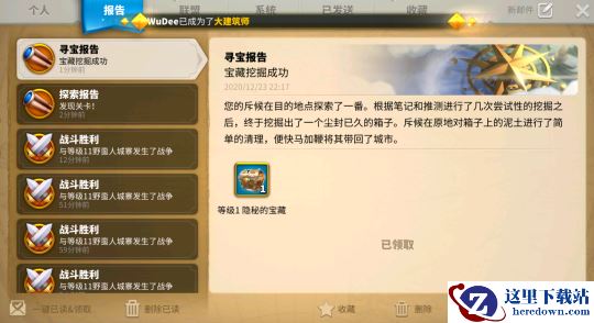 找到宝藏的位置后,派遣斥候挖掘即可获得宝藏。斥候完成挖掘后,宝藏将通过邮件发送。