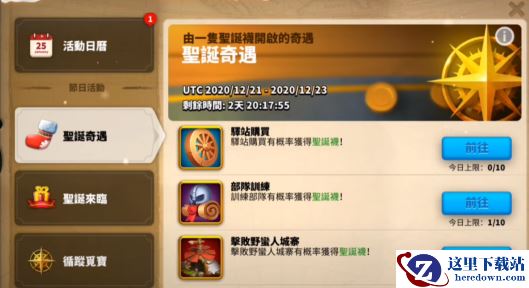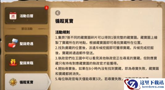 和KVK前置的王国宝箱一样的兑换方式。需要用过商店购买,部队训练,打城寨这三个方式获得圣诞袜,袜子可以开出地图的碎片,集齐碎片可以看到宝藏的位置,然后派斥候获取宝藏。宝藏会通过邮件发送。超过8小时后宝藏消失。(可以与盟友互换碎片)