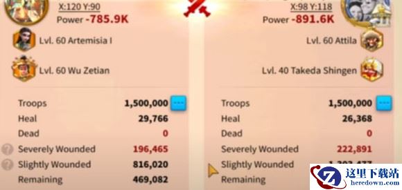 两位统帅分别降低普通攻击伤害10%,站在一起就是普通攻击减伤20%,非常克制阿提拉武田。虽然两个武将的兵种类型不同,但驻防天赋本身就没太强调纯兵,步弓混合驻防均可发挥优势。