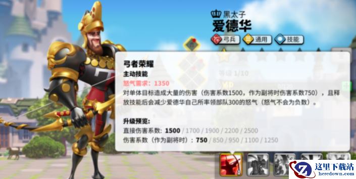 技能解析:首先来看伤害系数,2500目前是传说武将中最高的,和关羽一样作为副将伤害减半,所以注定是主将命。但是爱德华的怒气需求很高,1350才能放技能,而且还会降低自身怒气,可能是伤害太强的原因,怒气上面制裁一下老黑。