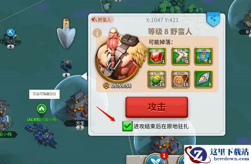 打野英雄天赋一定要点出来洞悉再去打野,野人等级选最高的,这样经验也多,然后就是点击野人,将进攻结束后原地驻扎勾选,这样打完不会自己回城