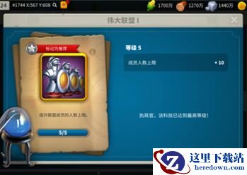 将伟大联盟的联盟科技升到满级,可以+10联盟成员人数上限,在增强联盟实力的同时,还能加快联盟科技的升级速度。