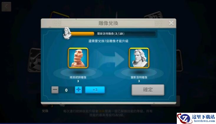 第三用来兑换,这里大家要注意,前提是同样品级之间的雕像才可以进行兑换。那么小编建议大家使用橙色统帅雕像之间相互兑换,因为这类雕像在游戏中获得难度很高,而且在途径上也不是很多,所以推荐玩家用此方式来提升橙色统帅的收集速度。