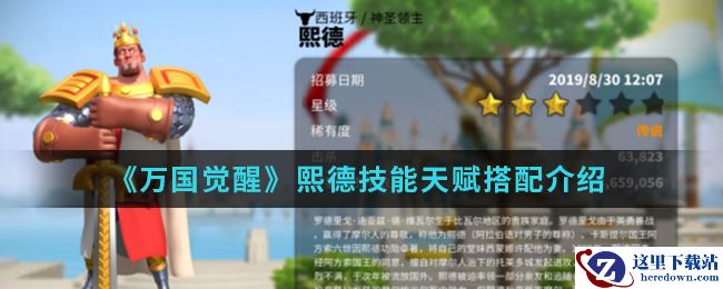 在万国觉醒手游中熙德技能天赋是什么呢?神圣领主熙德是游戏中的初始传说武将之一,有很多人被熙德帅气的外表所吸引,想大力培养作为主力,那么想知道熙德技能天赋搭配的就跟随小编一起来看看吧。
