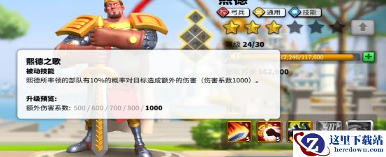 技能评价:乍一看很强,这个技能单独看着强度还可以。但考虑到半血以上的熙德只能靠着前三个紫将水平的技能打架,弓兵的身子板本身就脆,等到半血的时候兵力差距应该被前期已经被拉大了。这时候再来一个增伤也很难翻盘了。除非是在混战中没人打自己,才能起到比较好的的效果。这个技能只能算是锦上添花,算不上雪中送炭。