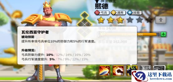 3、瓦伦西亚守护者:弓兵防御+(10/12/14/16/20)%,移速+(5/7/9/12/15)%