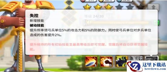 5、觉醒技能——失控:弓兵攻防+5%,对步兵增伤2%