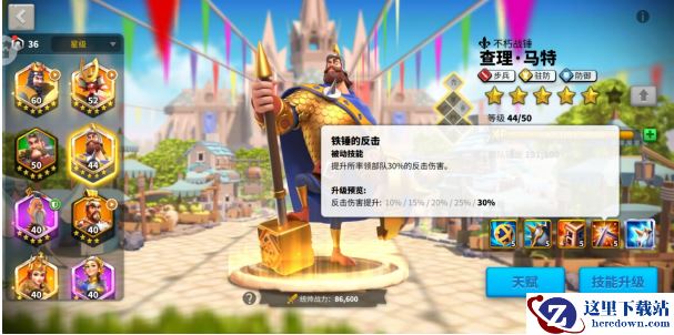 铁锤的反击(被动技能):提升所率领部队30%反击伤害。