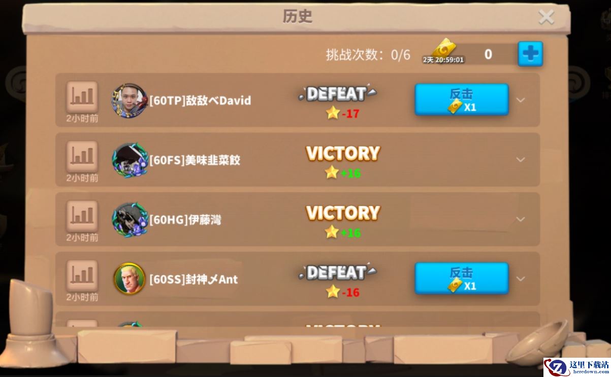 首先在挑战中疯狂刷新,找到一个将领水平很低,你能稳定吊打的玩家(或者你的小号)然后故意输给他一局,这样在右边的历史这一栏里面就会有一个失败的记录,接下来只需要疯狂的点击反击就能稳定把把胜利吃到16分的上分。