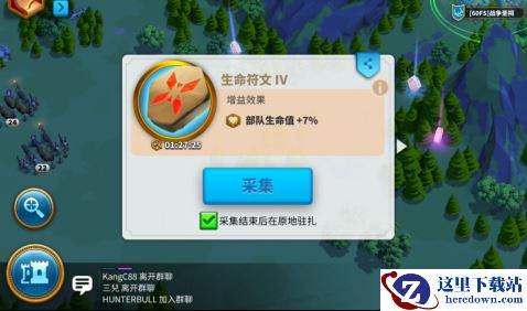 圣祠周围会刷新三级圣地守护者,击杀他们会掉落符文,这时候就要看看有没有对战斗有加成的符文,圣祠会掉落三级和四级符文,一般来说5%或者7%的攻击和防御还有生命值是必拿的。在前期各项战斗水平都很低的情况下加成还是非常可观的。如果有条件的话,集结玩家最好使用一个12小时的5%攻击力的BUFF。