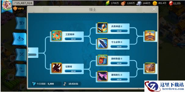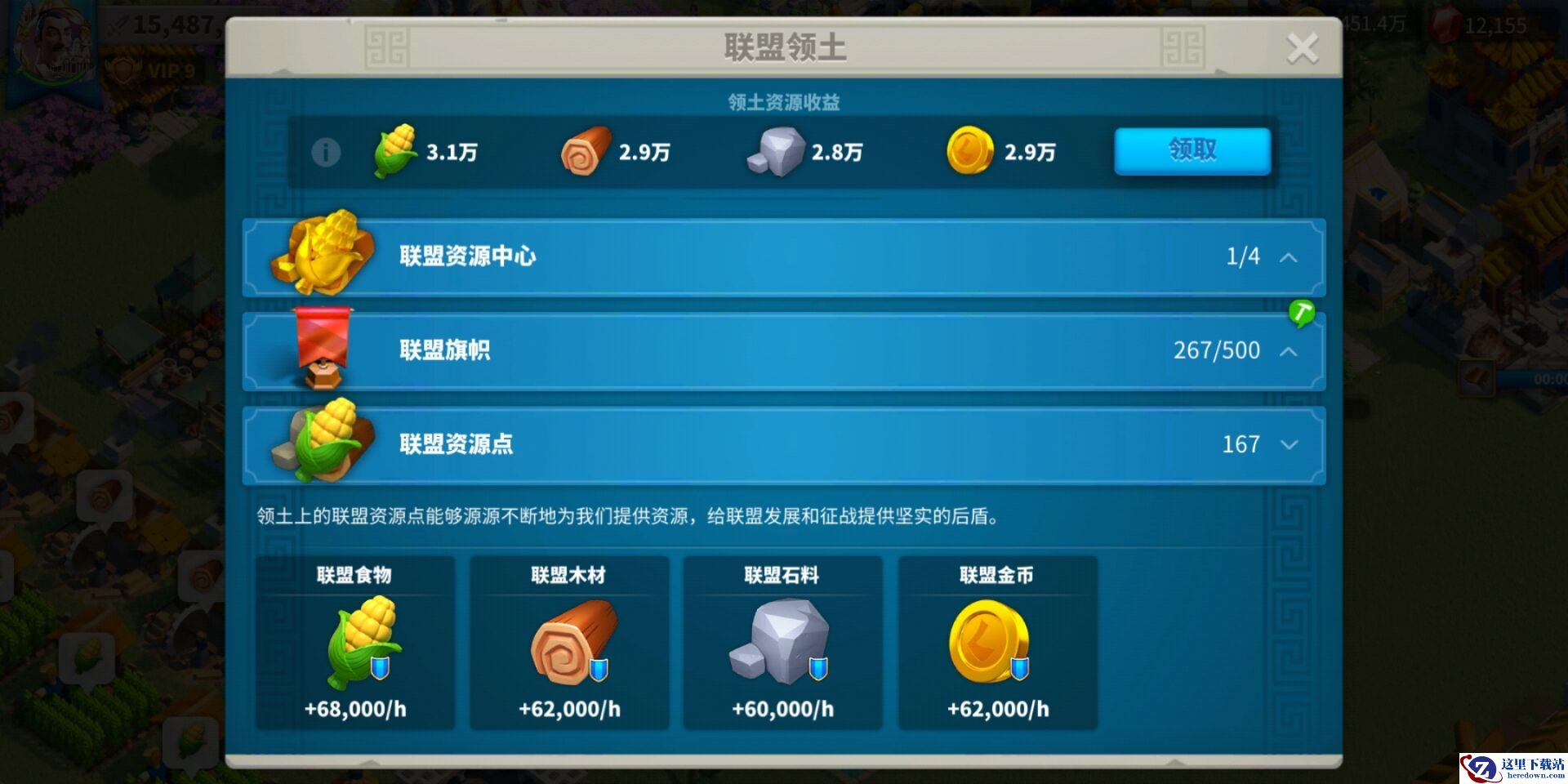 另外需要提升的就是“领土”科技,领土科技可以增加联盟旗帜数量,扩充联盟仓库以及减少建造旗帜和要塞需要消耗的联盟资源。