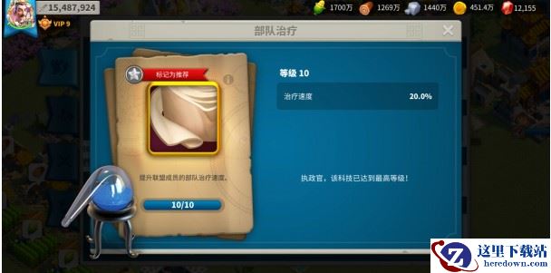而且,这个技能还可以配合游戏机制,实现快速治疗伤兵的目的。中后期打架时,我们治疗伤兵往往需要很长的时间,要花费大量的加速。如果采取一部分一部分治疗的话,就可以很快治疗好你的伤员,例如我们伤了很多兵,需要一天才可以治疗好,如果我们分批次治疗,一次只治疗一小时的兵,配合联盟成员的帮助可以做到秒治疗的效果。