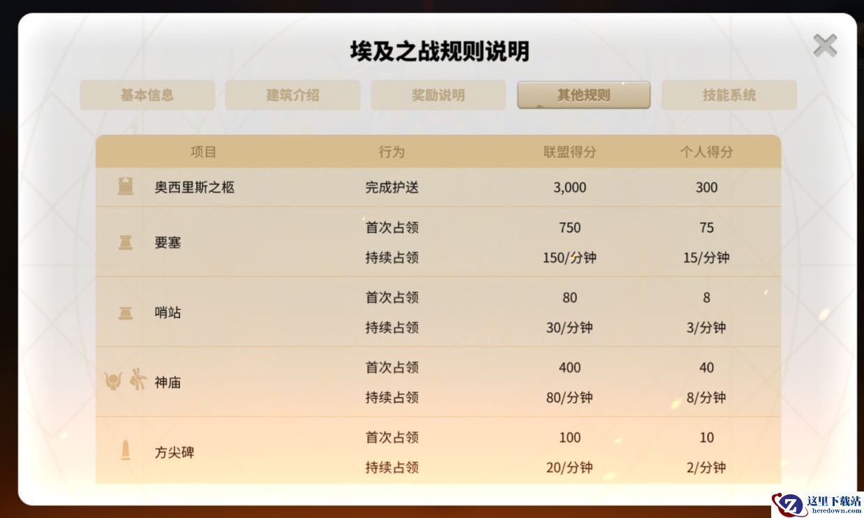 个人得分主要分为运送灵柩、采集、占领建筑,击杀敌人,具体得分规则如下图。