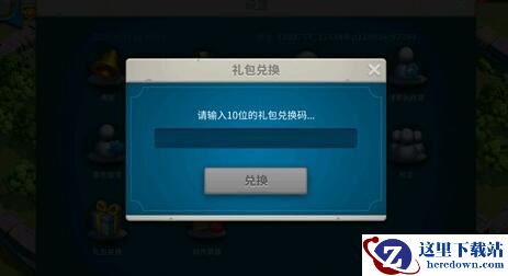 4、在弹出的礼包兑换的窗口,将十位数的礼包兑换码输入进去,点击【兑换】按钮即可。