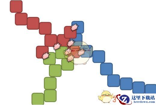 首先,每一场战役的展开基本大同小异,都是这样的:(假设蓝绿是同一国,红是另一国,单挑时则只有红蓝两方)