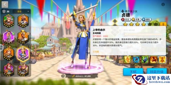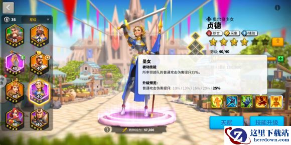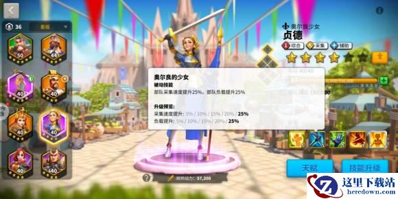 所有采集武将的等级只需要升到37级,贞德也不例外。以下图为例,将采集天赋点到如图所示就可以了,如果你的等级更加的高了,你可以选择辅助天赋。
