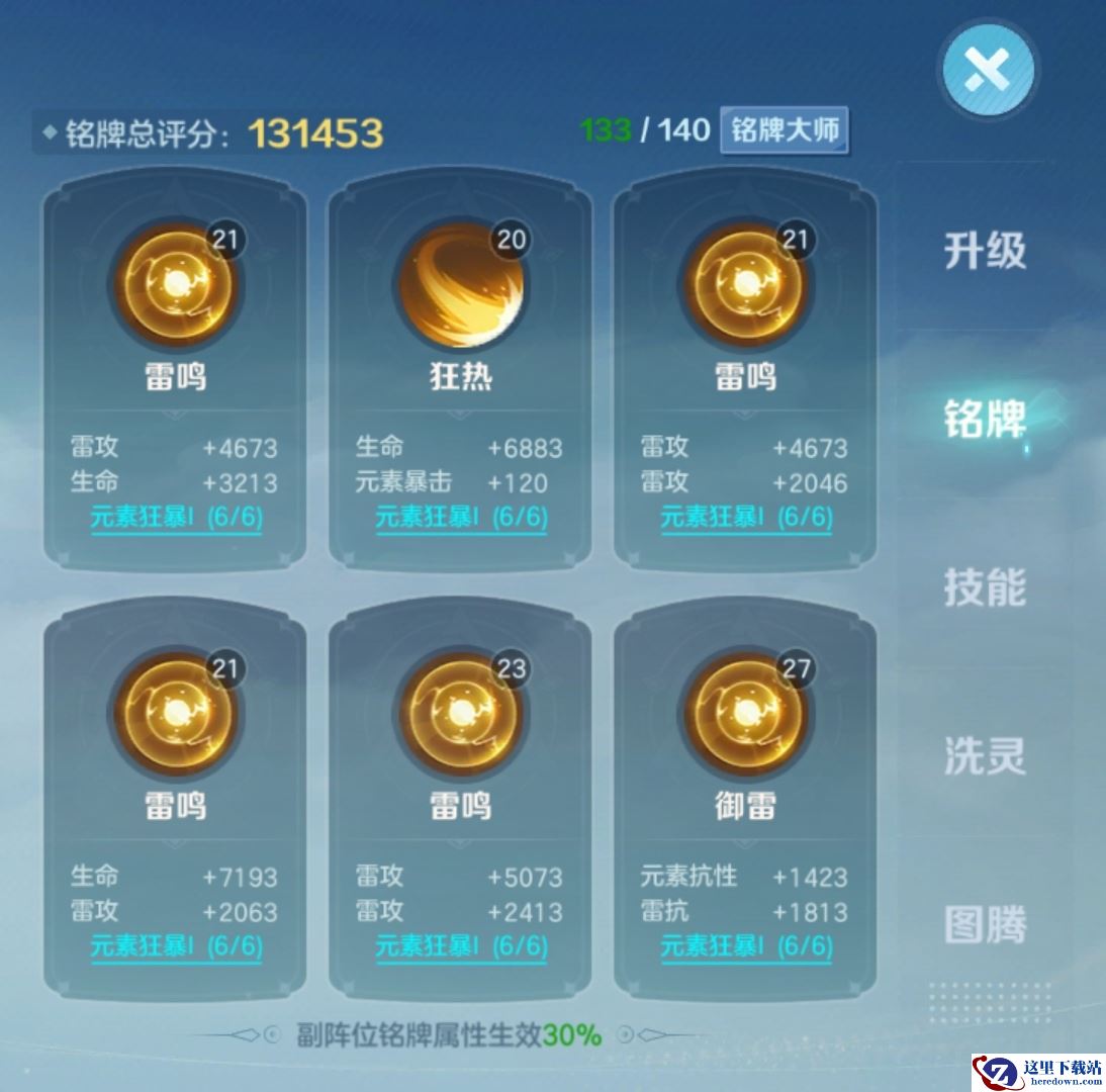 元素铭牌的属性跟主元素一致,主元素是雷元素,你铭牌就得洗雷攻,辅助位元素的铭牌同样必须是雷攻,水攻火攻是不会生效的。
