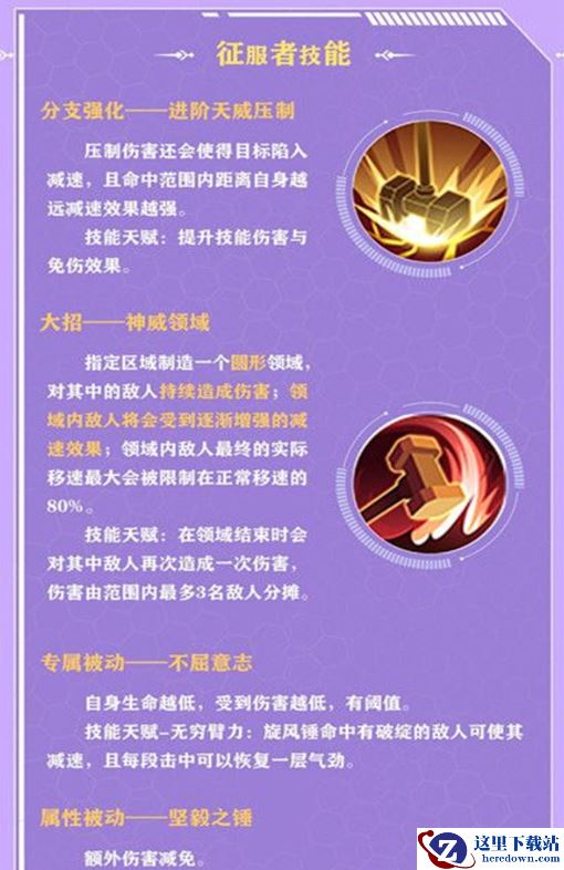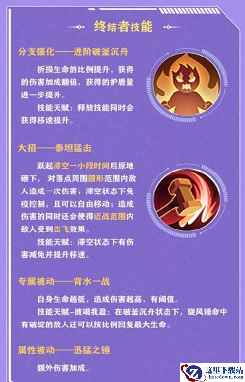 技能天赋:护盾持续期间战锤获得伤害加成,战锤的生命越低,获得的伤害加成就越高,伤害加成有上限。