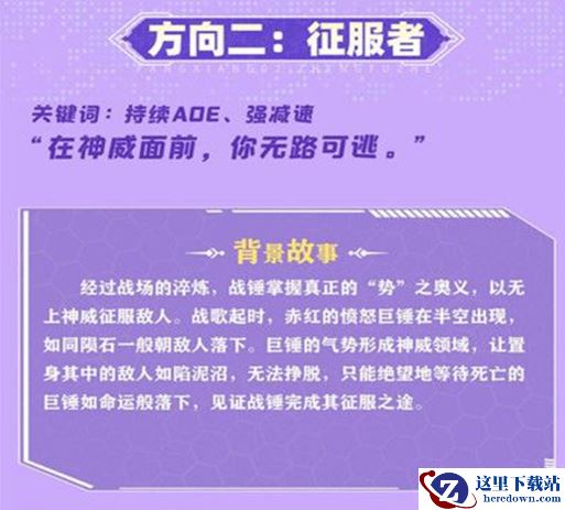 刚猛霸道,以力服人,坦度够高,承伤能力强大,有很多解控技能,自带护盾防御,同时具有较高的输出能力,进能一锤击杀,退能持续增伤。