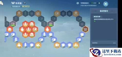 考虑到最后的路线是可以再点爆伤和抗性比(如下图)。因此可以点部分防御凑够280点要求,然后把最终节点【备战强化】开启(优先升满)。然后将按最低需求再点出【爆伤】和【抗性比】。