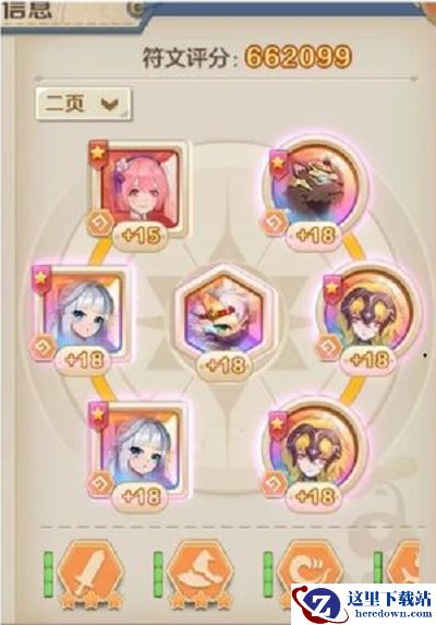 3、第一页符文两个德古拉+一个爱丽丝凑三星猎魔词条。