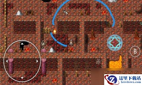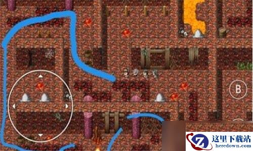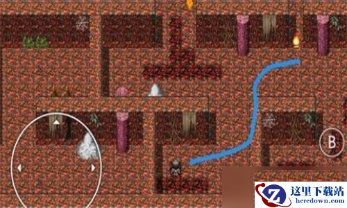 3、接下来,我们将踏入真火秘境。首先,请依照蓝色线条指引前行,途中需与一只小鬼交战,可用异水轻松击败。