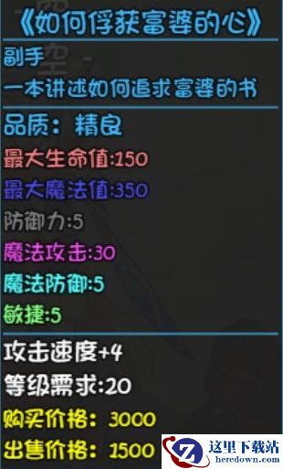 1、酒馆一楼弹钢琴的女的可以购买琴谱(魔法),一个治疗1-1000(看脸),一个加18双攻(还行)