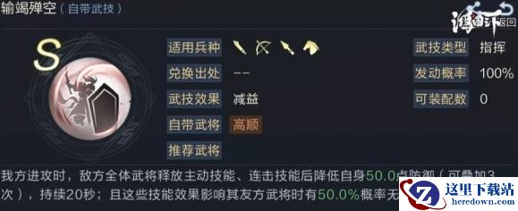 2号武技推荐金蝉脱壳,恢复类武技大多依靠智力计算,而高顺的智力成长并不高,所以同时带有净化效果和抵挡效果的金蝉脱壳比较适合高顺,可以规避掉不少主动技能伤害。