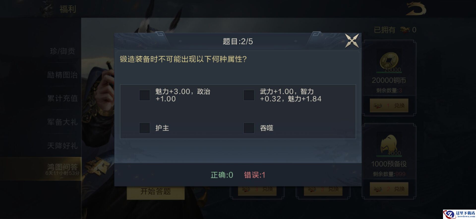 以上就是小编整理关于《鸿图之下》锻造装备时不可能出现以下何种属性答案介绍的全部内容,想知道更多相关资讯攻略的请关注手游网。