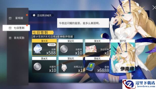 在《X2解神者》星辰跃迁测试【7月29日10:00-8月5日16:00】期间,累积签到第七日就可以获得三星神格伊南娜。