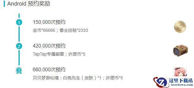 15万次预约:金币*66666;兽主经验*2333